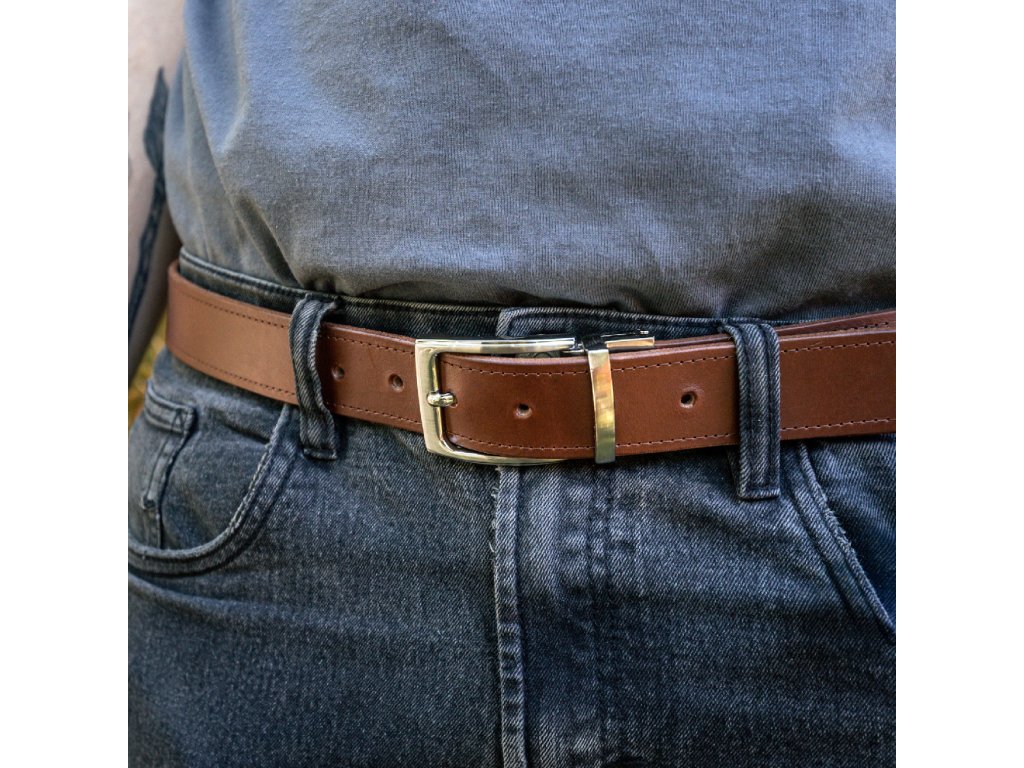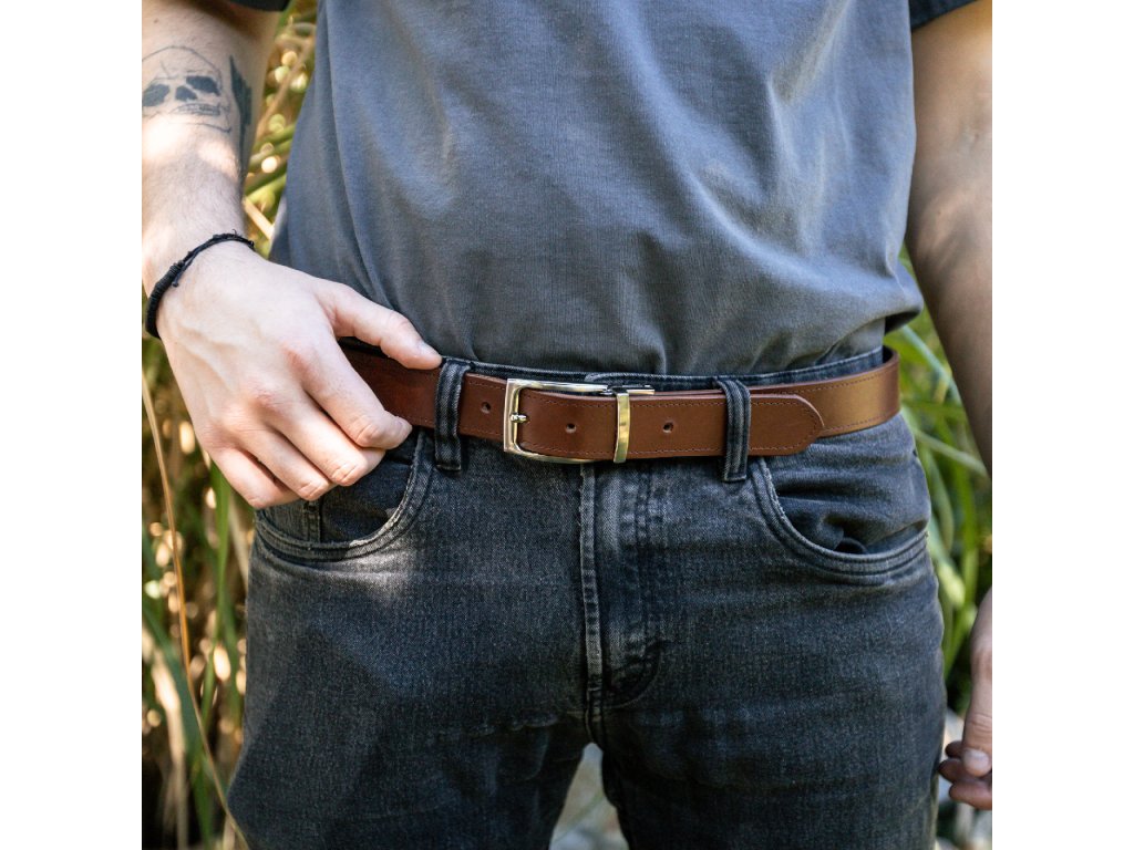Hnědý kožený opasek s decentní prošíváním, který píše historii.